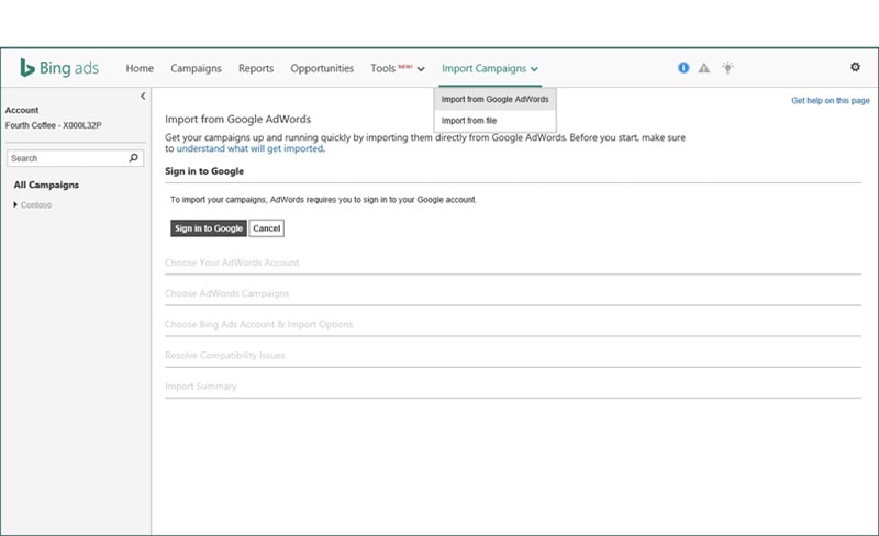 Importera enkelt dina Google AdS-kampanjer till Microsoft Advertising.